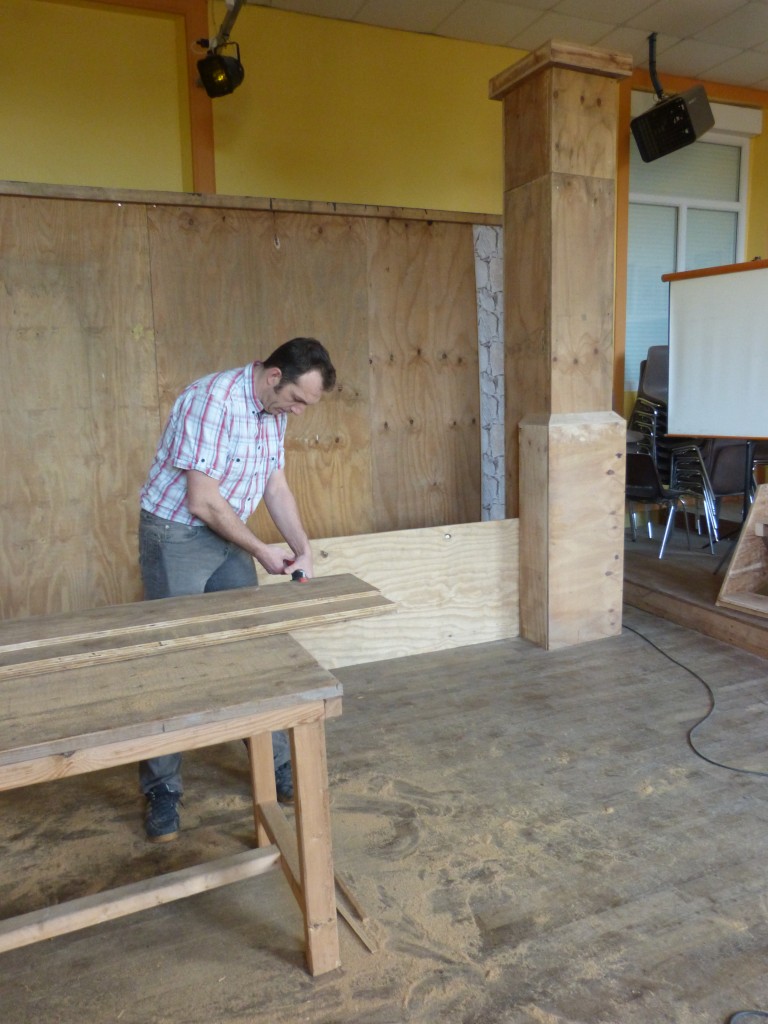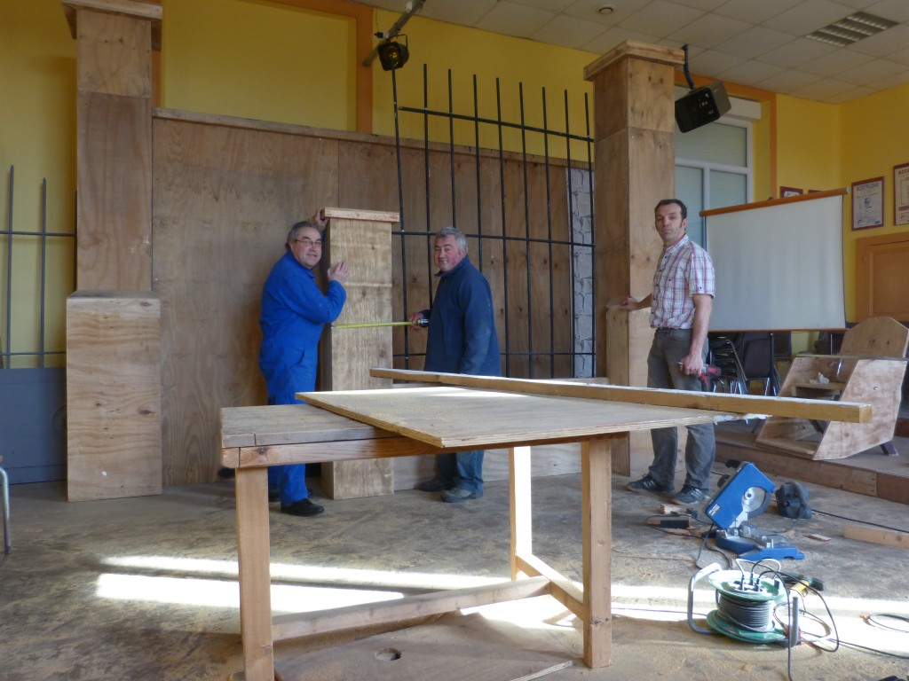 Depuis le mois de septembre, les bénévoles de la troupe des illuminés Michel Claris, Philippe Patis et Thierry Pinard – décorateur en chef – se réunissent chaque semaine pour construire les décors nécessaires au spectacle Roméo et Juliette.